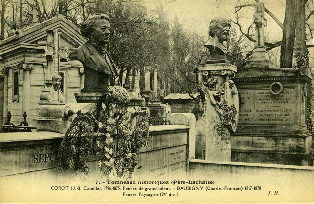 Caveau de Daubigny (à droite), à côté de Corot. Cimetière du Père Lachaise - Paris - France