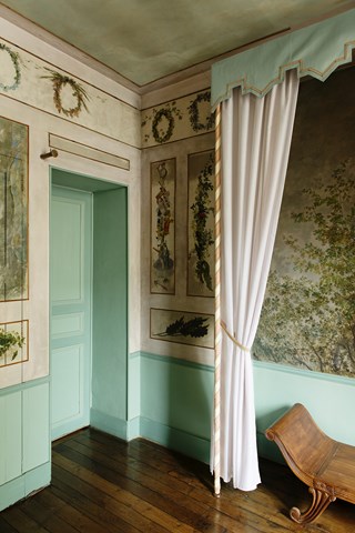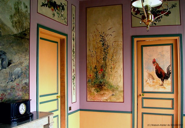 « À moments perdus », principalement les jours de pluie où il ne fait pas bon d’aller dehors pour peindre sur le motif, les Daubigny et leurs amis s‘activent à l’intérieur de l’Atelier. Ils reproduisent les dessins de Corot sur pas moins de 100m² de toile marouflée sur les murs. Oudinot, aussi peintre à ses heures, conçoit la cheminée sculptée en bois et les dessus de porte.